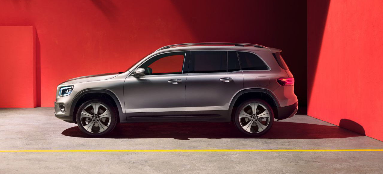 Bahu kendaraan berotot dan berkontur mendominasi tampilan samping di ketinggian pilar C, efek ini diperkuat oleh garis meninggi. Lampu depan LED High-Performance merupakan perlengkapan standar untuk GLB dan secara signifikan meningkatkan visibilitas saat berkendara di malam hari.