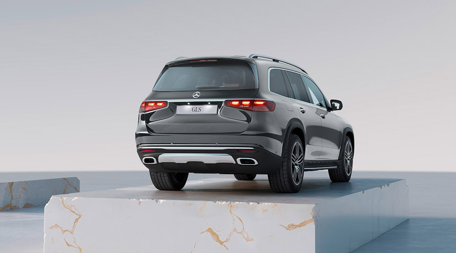 With the new front end, the GLS impresses at first glance: the modern front apron, with the striking, enlarged radiator grille with four slats, embodies the strong SUV character and its aesthetic elegance.